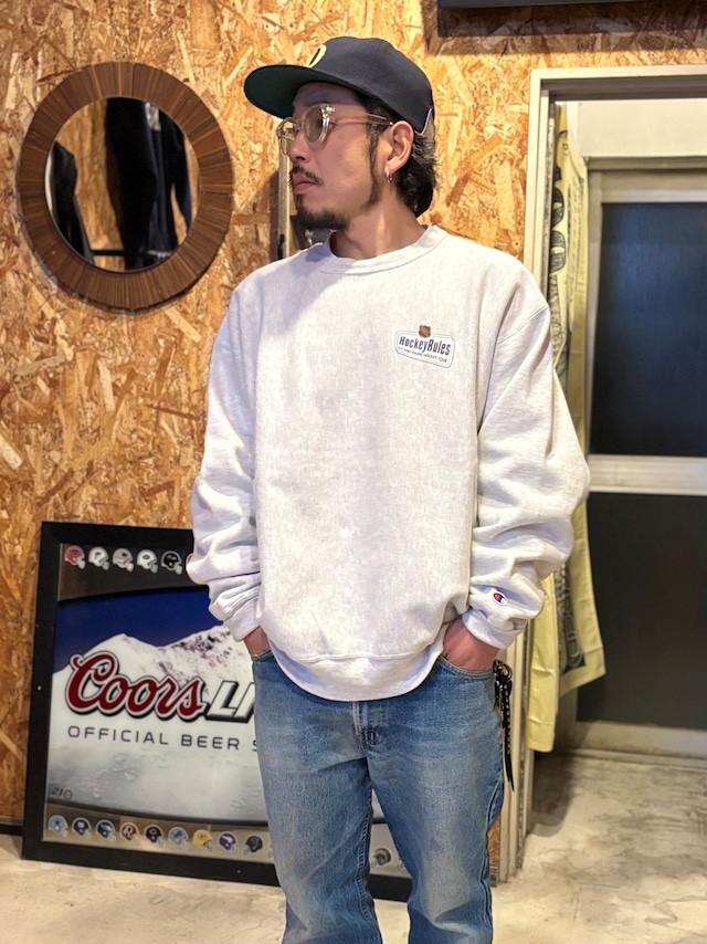 派手じゃない。 でも、ちゃんと古着としてカッコいい。 Championの Premium Reverse Weaveならではの重さと存在感。 ワンポイントだからこそ、 パンツも靴も選ばない万能スウェット。 サイズ表記 size 不明(タグ薄れのため判別不可) 着用モデル 162/63kgで やや大きめ 袖たまりあり ざっくり着れます サイズ感、かなり良いです。 着丈 68㎝ 身幅 68㎝ 肩幅 62㎝ 袖丈 66㎝ ※サイズはすべて平置きで採寸しています。多少の誤差が生じる場合がございますので、あらかじめご了承ください。 Championの名作Premium Reverse Weaveシリーズのクルーネックスウェット。 左胸には「Hockey Rules」ワンポイントプリントが入り、主張しすぎないデザインでストリート・アメカジどちらにもハマる一枚です。 ボディは肉厚でタフなリバースウィーブ仕様。着丈に対して身幅がしっかり取られた、今っぽいルーズなシルエットが魅力です。 グレーボディは合わせやすく、デニム・カーゴ・チノなど幅広く活躍します。 90sストリートリバイバルの流れとも相性が良く、1枚でもインナーでも使える万能スウェットです。 再入荷なしの一点物。 店頭・オンライン同時販売なので 気になる方はお早めに。 ──────────── 安い古着ではありませんが、 年代・ブランド・状態を考えると 今後この価格で出てくる可能性は低いと思います。 実寸を細かく測り、 ダメージも正直に記載しています。 値段ではなく内容で選ぶ方におすすめです。 Pay ID対応なので住所入力なしで即購入できます。 古着はタイミングです。気になった方はお早めに。 ──────────── 当店ではすべて一点ずつ検品を行い、 状態はできる限り正直に記載しています。 古着に慣れていない方でも安心してご利用下さい。