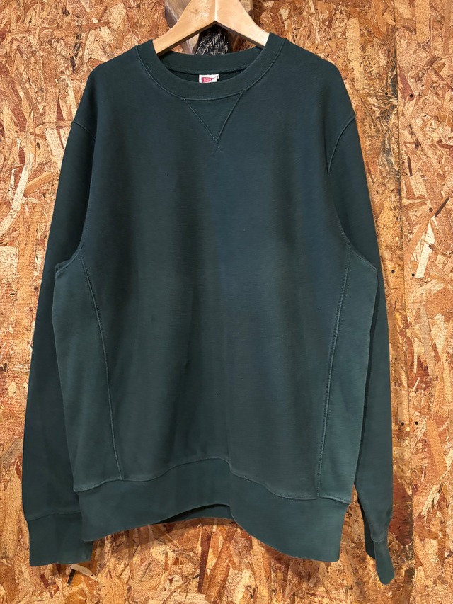 90s J.CREW 無地スウェット グリーン Vガゼット サイドパネル クルーネック