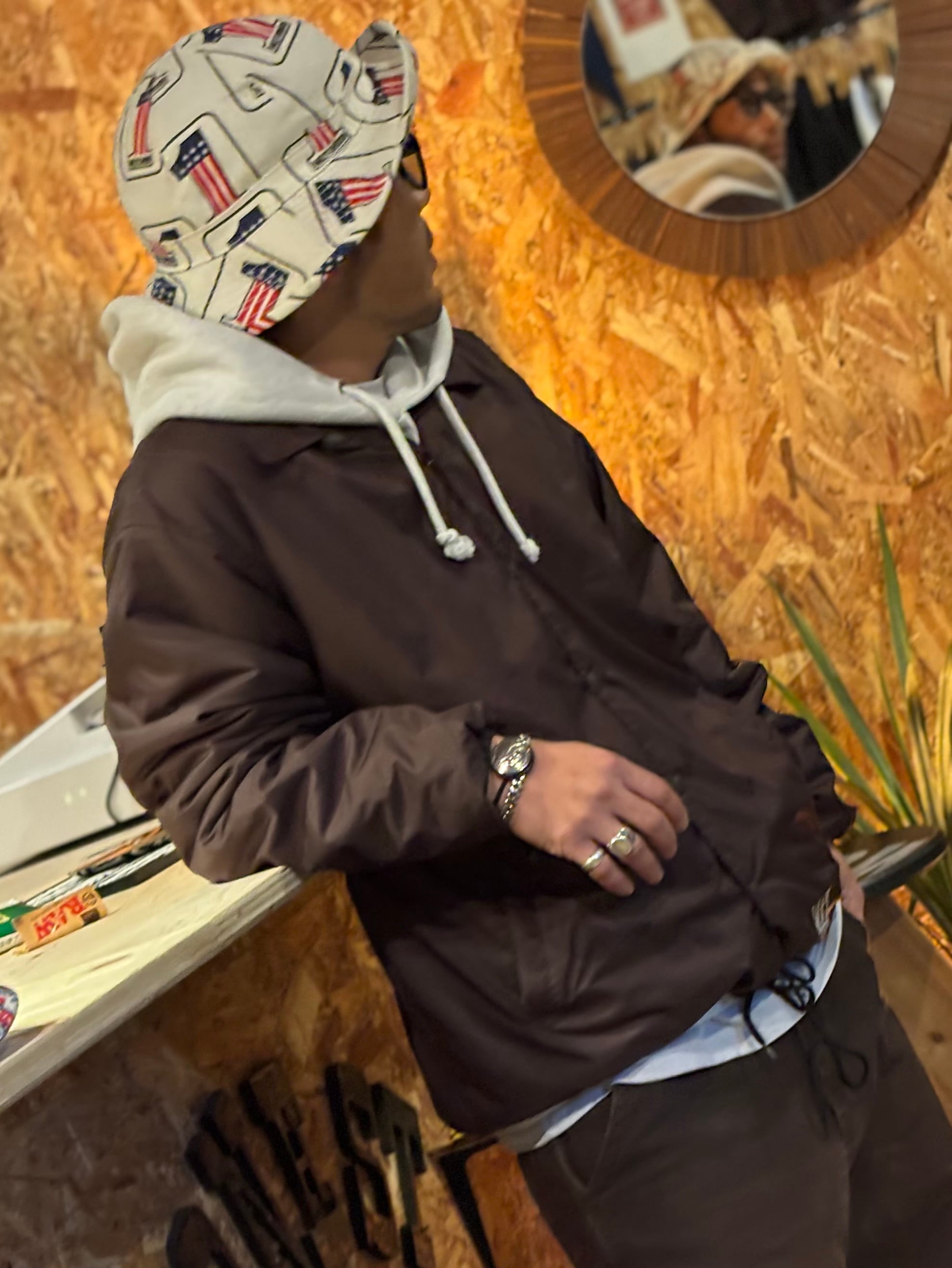 アメリカ国旗と数字の1が特徴的なバケットハット。
