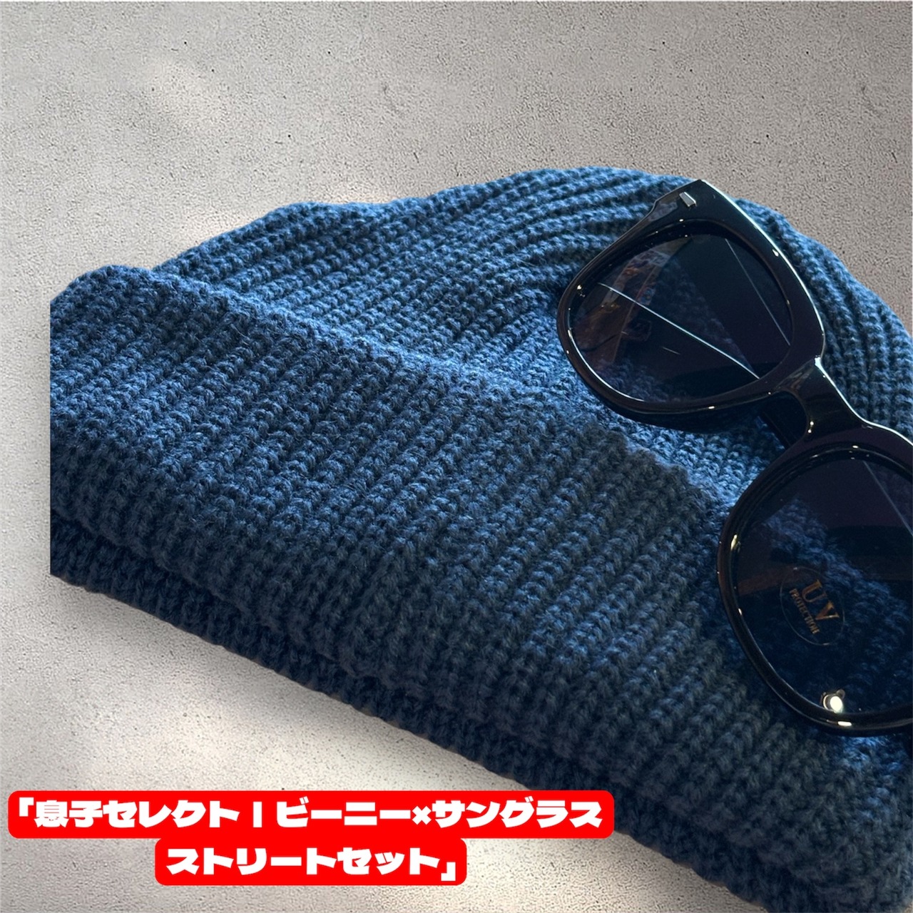 ビーニー×サングラスの小物セットです。